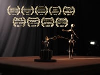 „Die ganze Welt ist eine Bühne“. In diesem Theater zeigt der Tanz einer Marionette, destrukturiert in Zeit und Raum, die Mechanismen, die die Strippen ziehen.