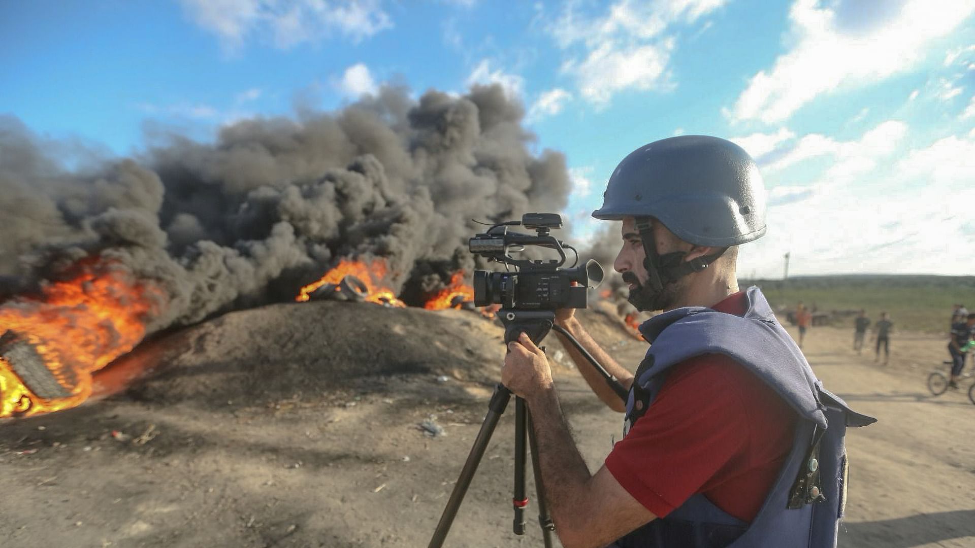 Der Reporter und Kameramann Mohammed Alaloul arbeitet für die türkische Nachrichtenagentur Anadolu. Täglich schickt er seine Bilder vom Krieg in seiner Heimat Gaza in die Türkei, von wo sie dann weiter ihren Weg in die Medien der ganzen Welt finden können.
